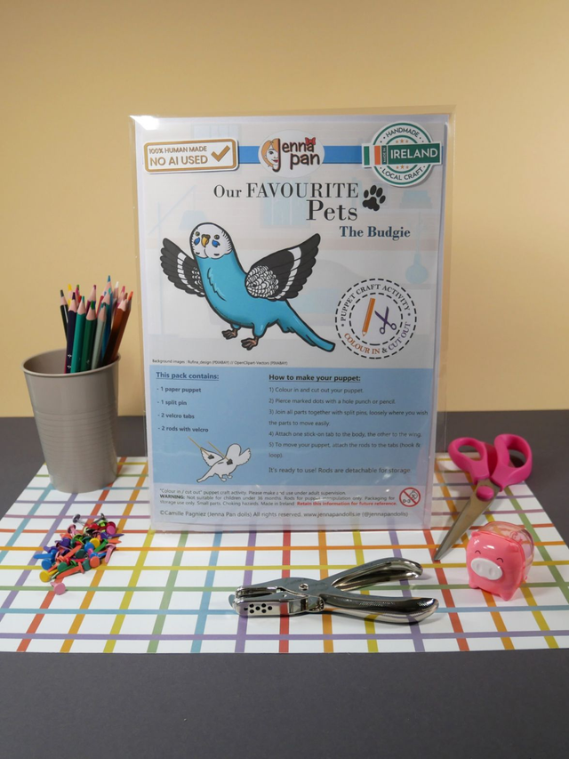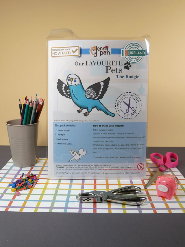 Designed and made in Cork City, Ireland by Camille Pagniez (Jenna Pan dolls). No AI has been used during the creative process.