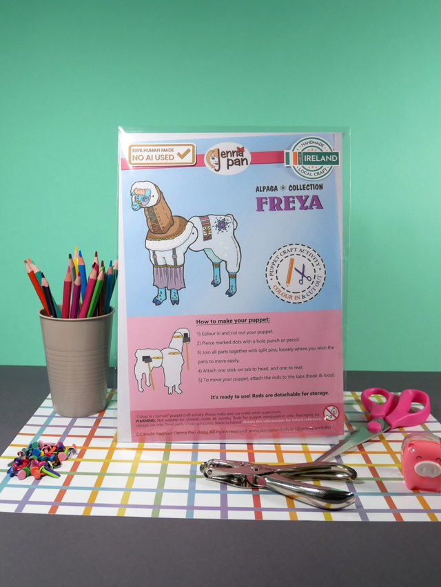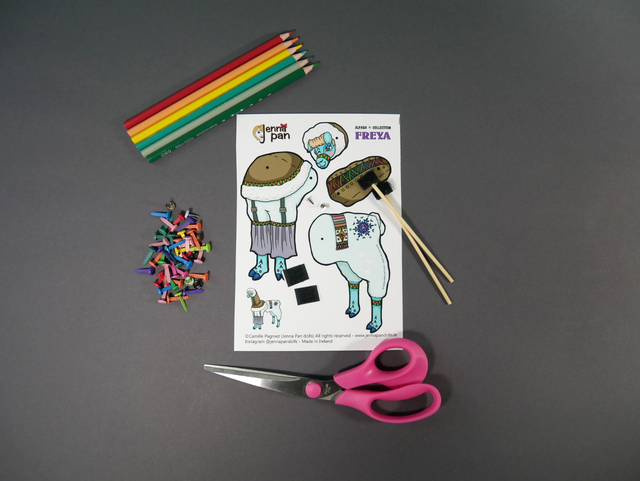 Designed and made in Cork City, Ireland by Camille Pagniez (Jenna Pan dolls). No AI has been used during the creative process.