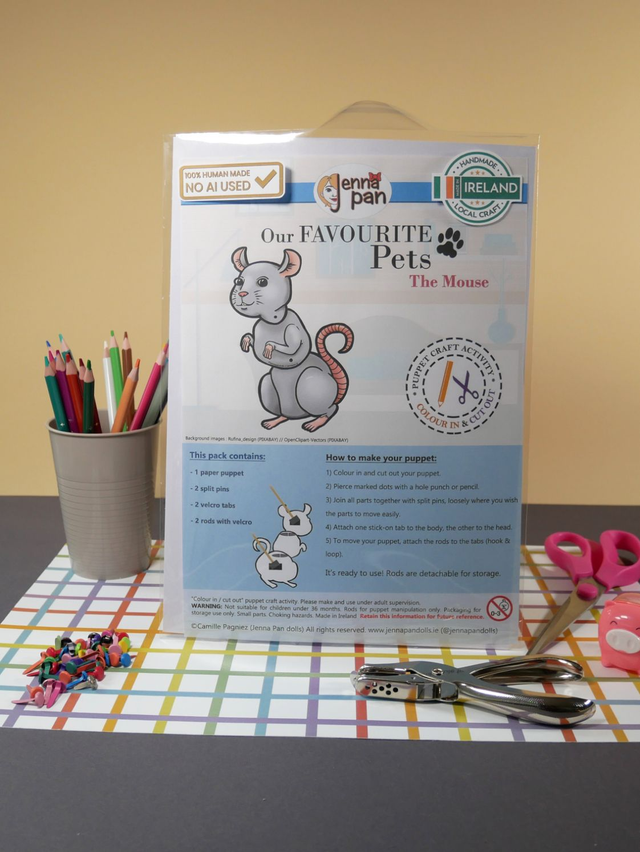 Designed and made in Cork City, Ireland by Camille Pagniez (Jenna Pan dolls). No AI has been used during the creative process.