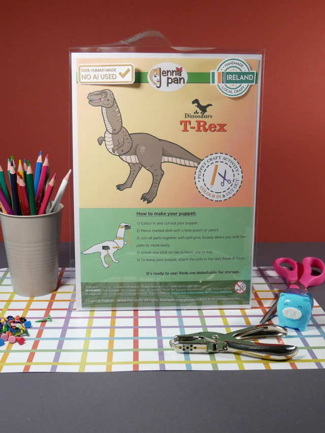 Designed and made in Cork City, Ireland by Camille Pagniez (Jenna Pan dolls). No AI has been used during the creative process.