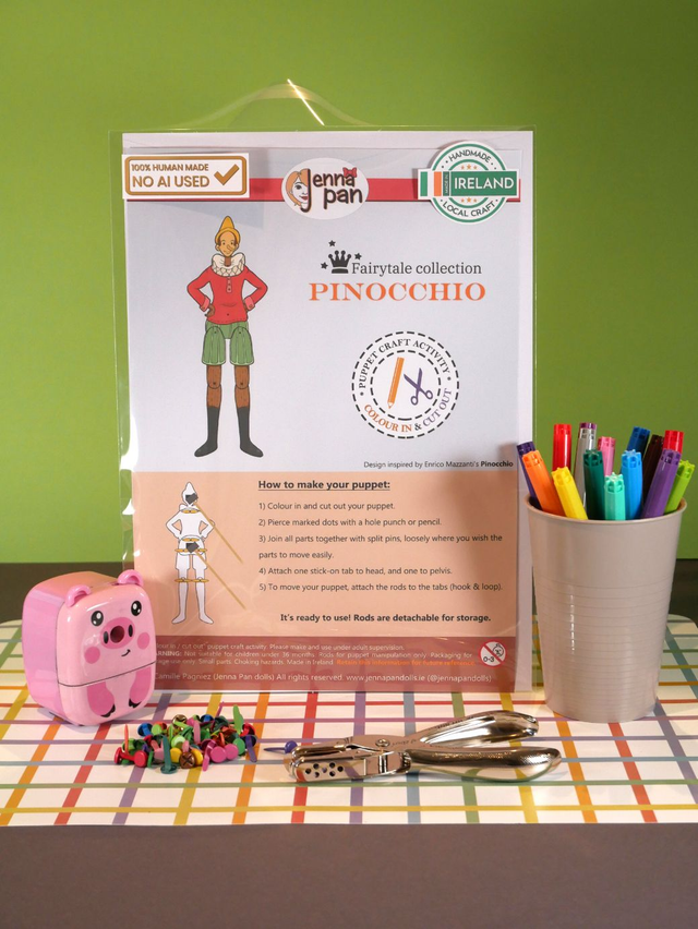 Designed and made in Cork City, Ireland by Camille Pagniez (Jenna Pan dolls). No AI has been used during the creative process.